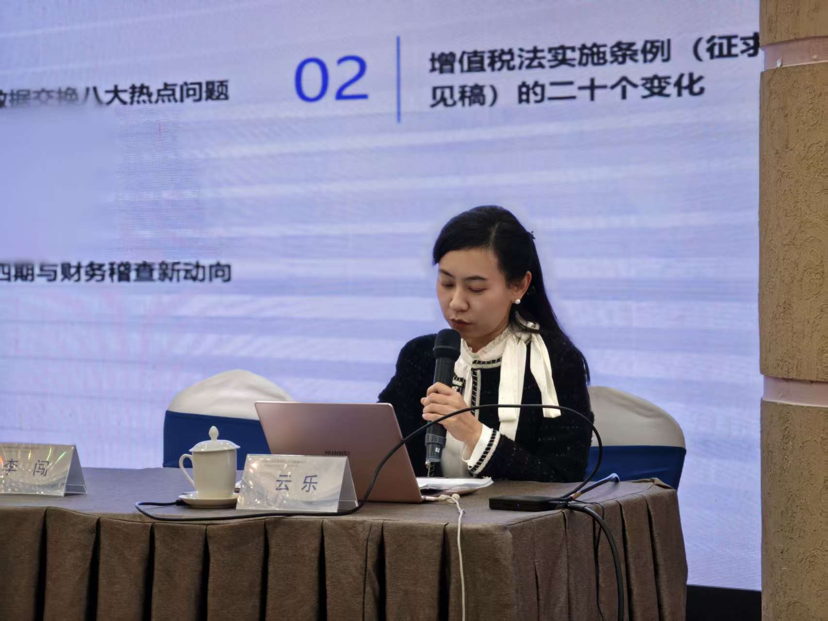 随后,云乐所长登台带来专业干货分享。她以“政策解读+风险防控”为核心,围绕增值税立法新规、CRS共同申报准则两大重点议题展开深度解析:一方面,精准阐释增值税法实施条例(征求意见稿)的二十个变化,结合跨境业务实操案例拆解税务处理难点;另一方面,聚焦金税四期监管升级与财务稽查新导向,为企业构建全流程税务风险防控体系提供了可落地的实操指引。